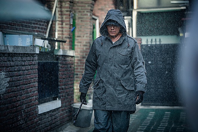 강천은 우비를 쓰고 여자 뒤를 따라 걸어간다. 겁에 질린 여성과 마주하자 무표정한 얼굴로 여자를 스패너로 내려쳐 살해한다. 신문 기사에는 여성들의 실종 관련 기사가 나온다.