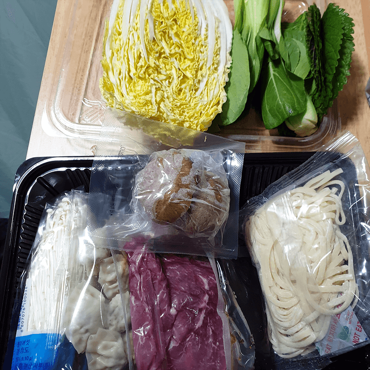 2인분이라고 합니다. 하지만 밀키트 특성상 고기가 부족합니다만 만두와 칼국수 또는 밥을 곁들여 먹으면 무난해 보입니다.