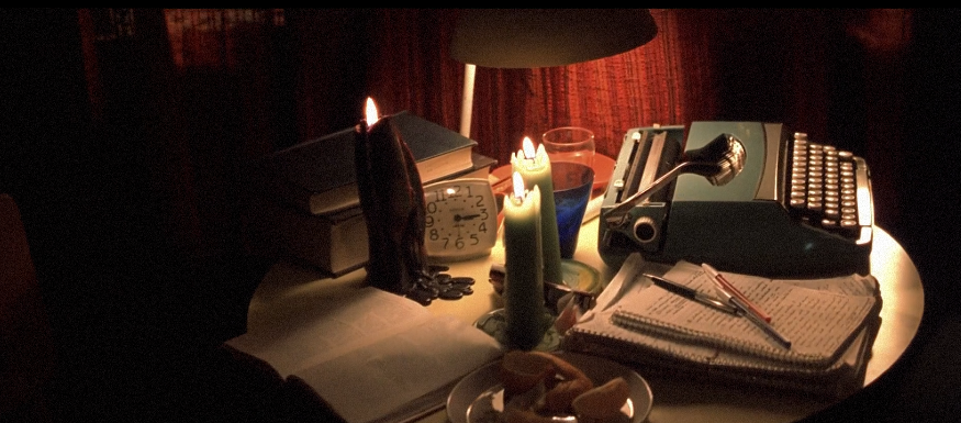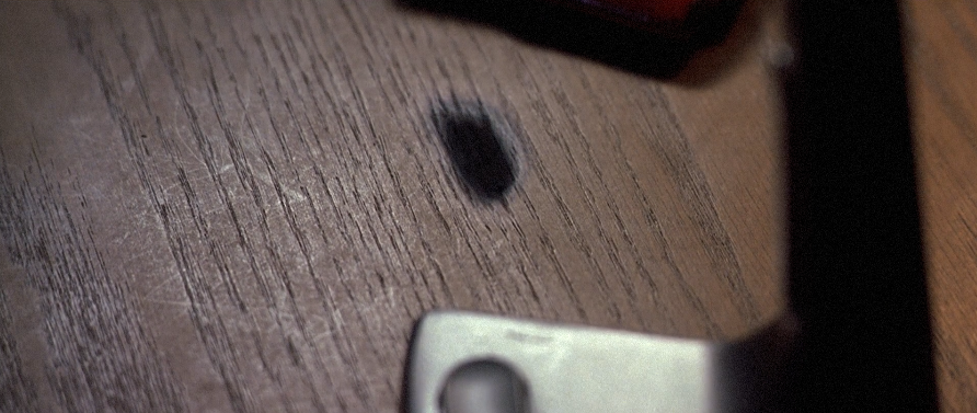 듣고 있던 프랭크는 놀란 나머지 담배를 제대로 재떨이에 끄지 못해 책상에 불이 붙는다. 30년 후 아들이 앉아 있는 책상에는 실시간으로 책상 탄 흔적이 생겨 난다.
